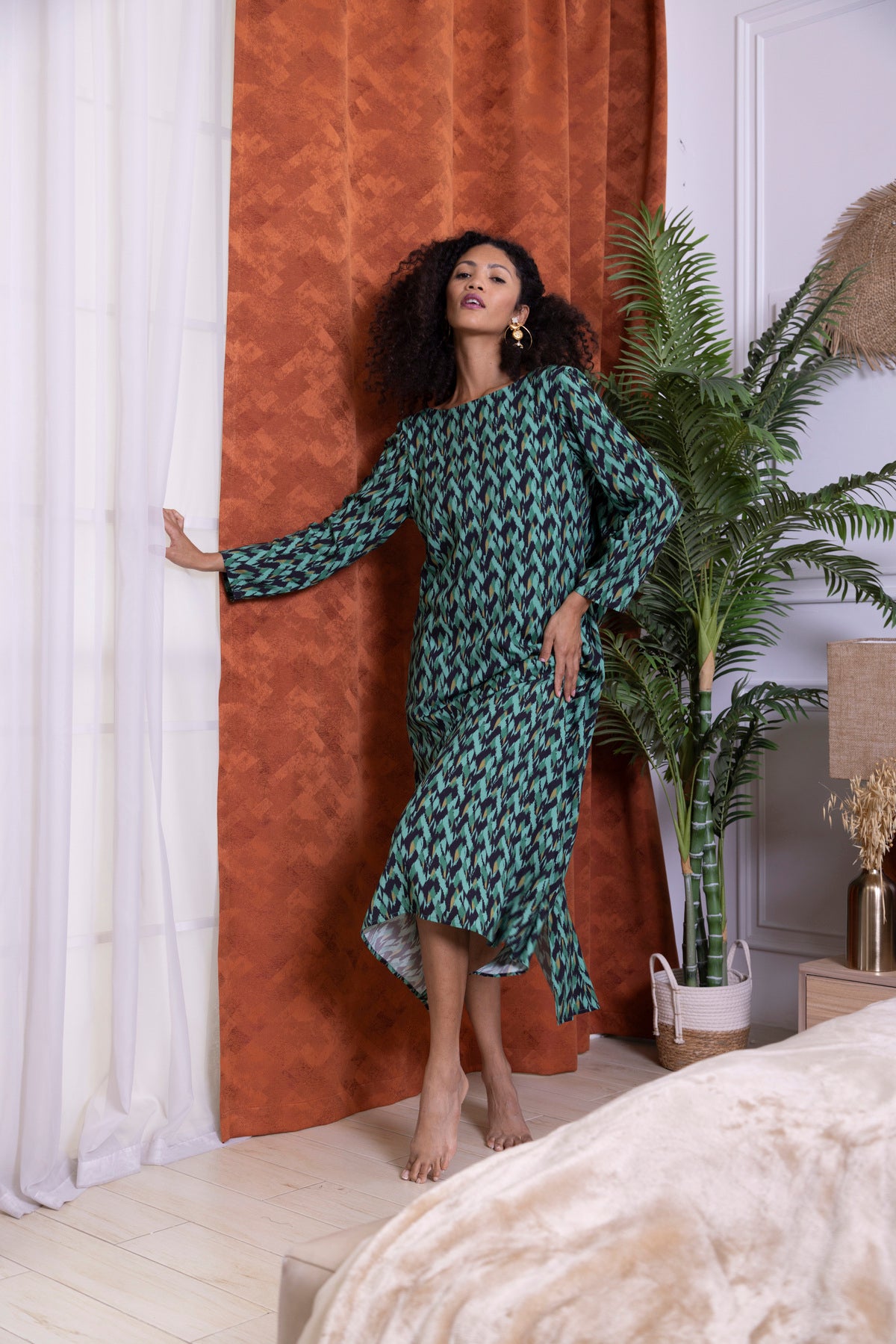 A simple and elegant long sleeve cotton dress with two low back slits, its beauty lies in its minimalism and stunning open back. This is definitely a piece worth holding onto.