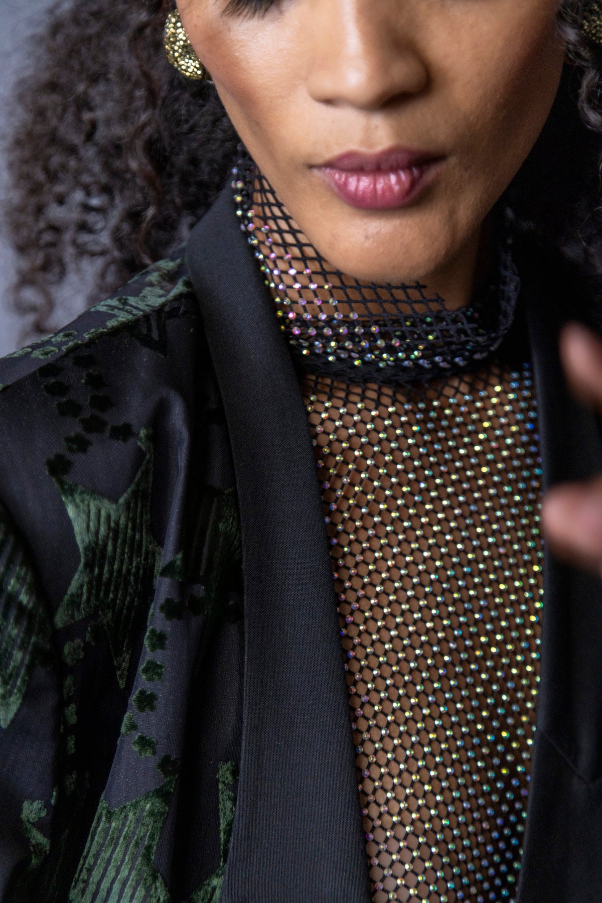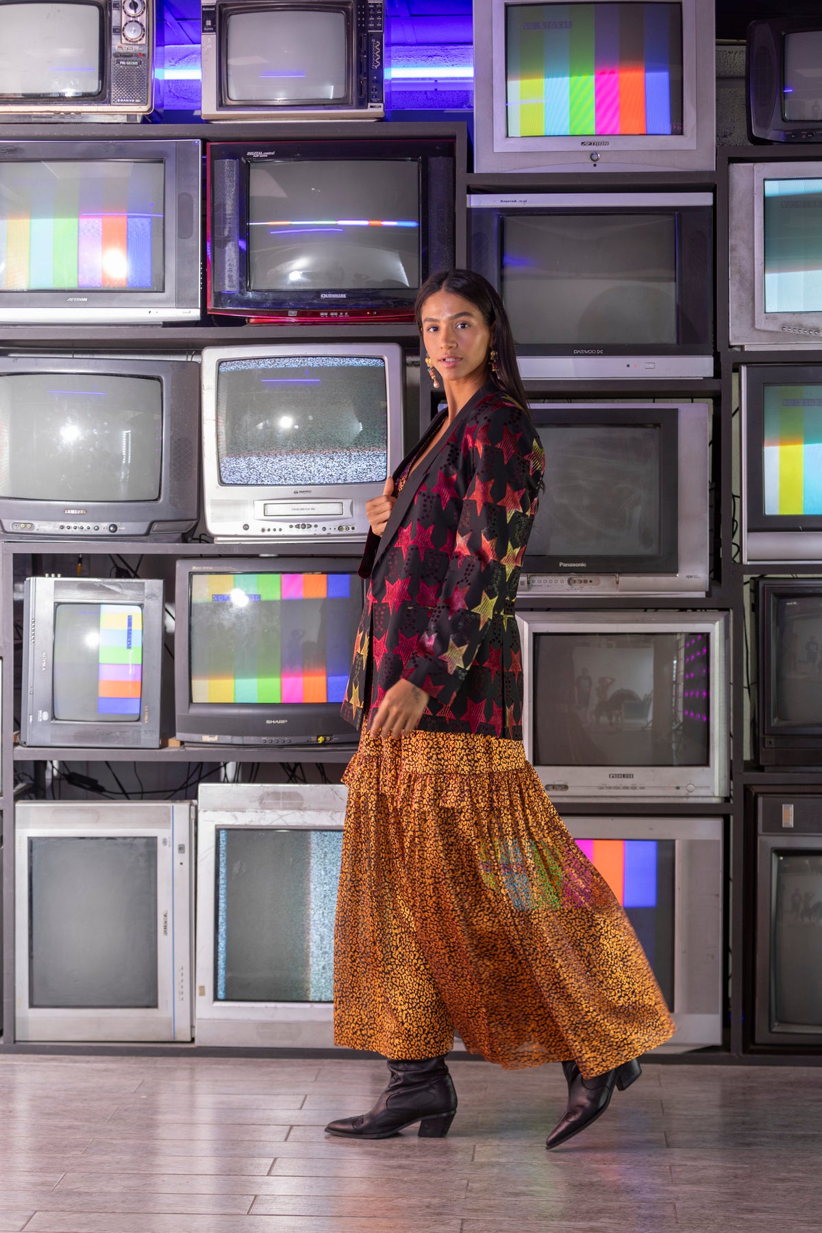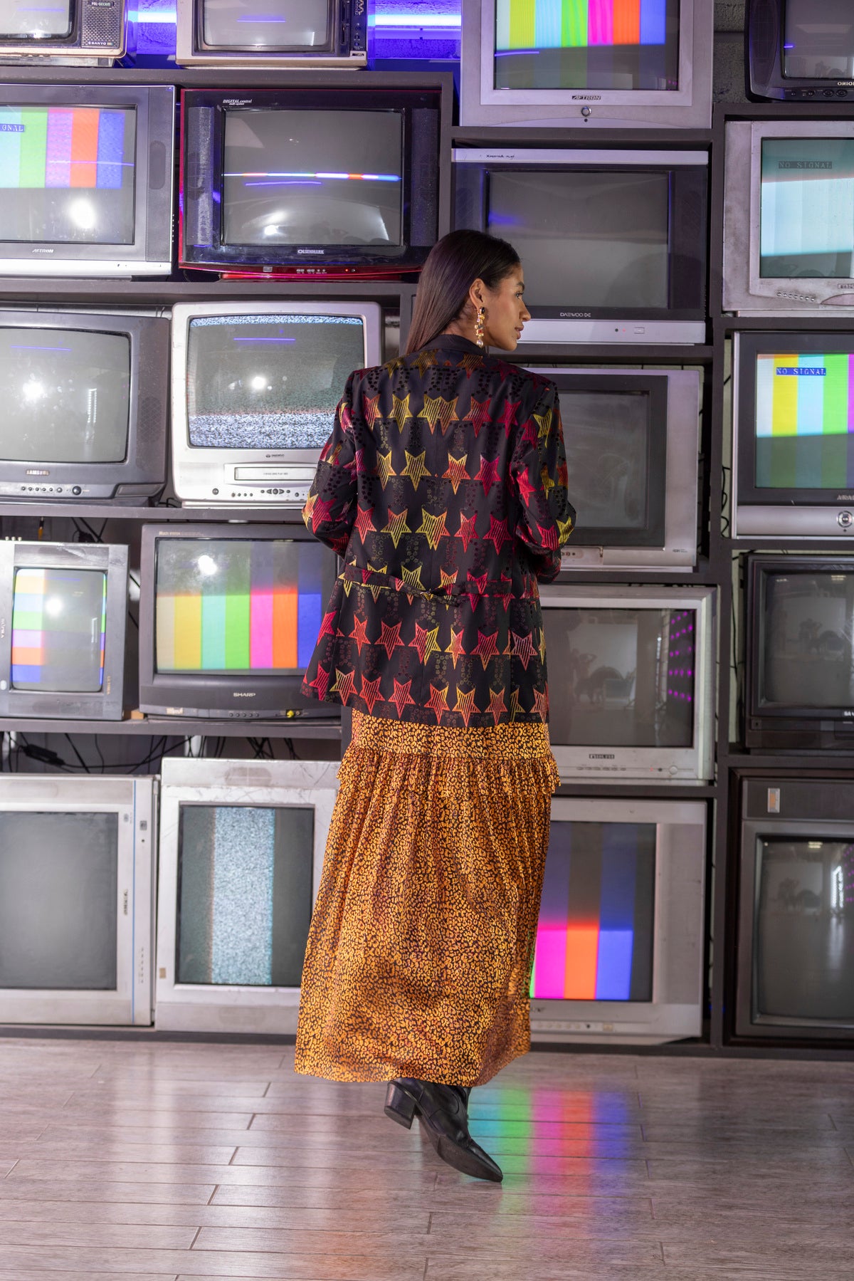 It’s our latest, classic, easy-to-wear, timeless piece in our fun velvet star prints , the fabric is beautiful, breathable & light . The perfect treasure-forever blazer jacket detailing in a relaxed, loose, works on everyone cut. It will definitely steal your heart and make any outfit extraordinary.
