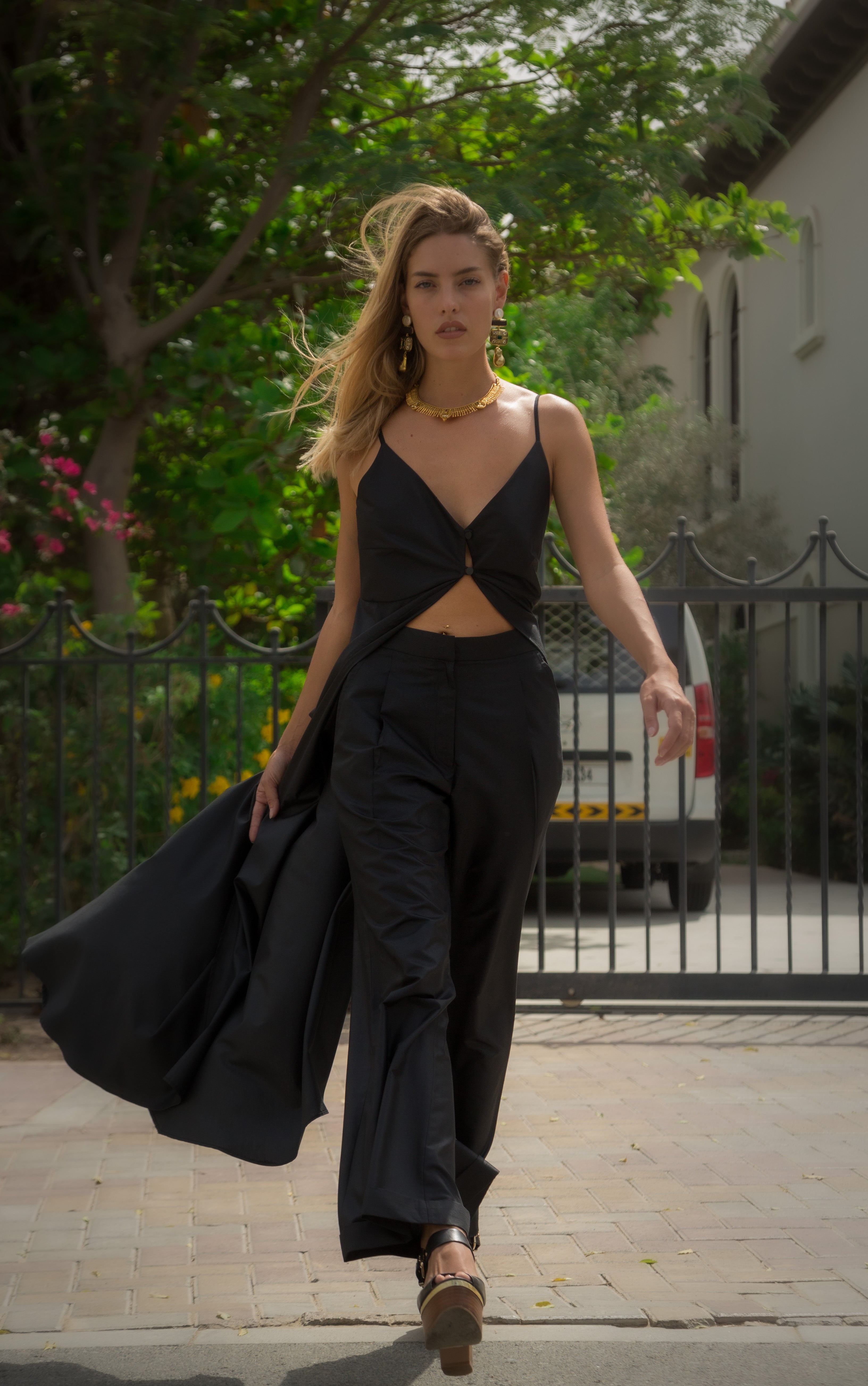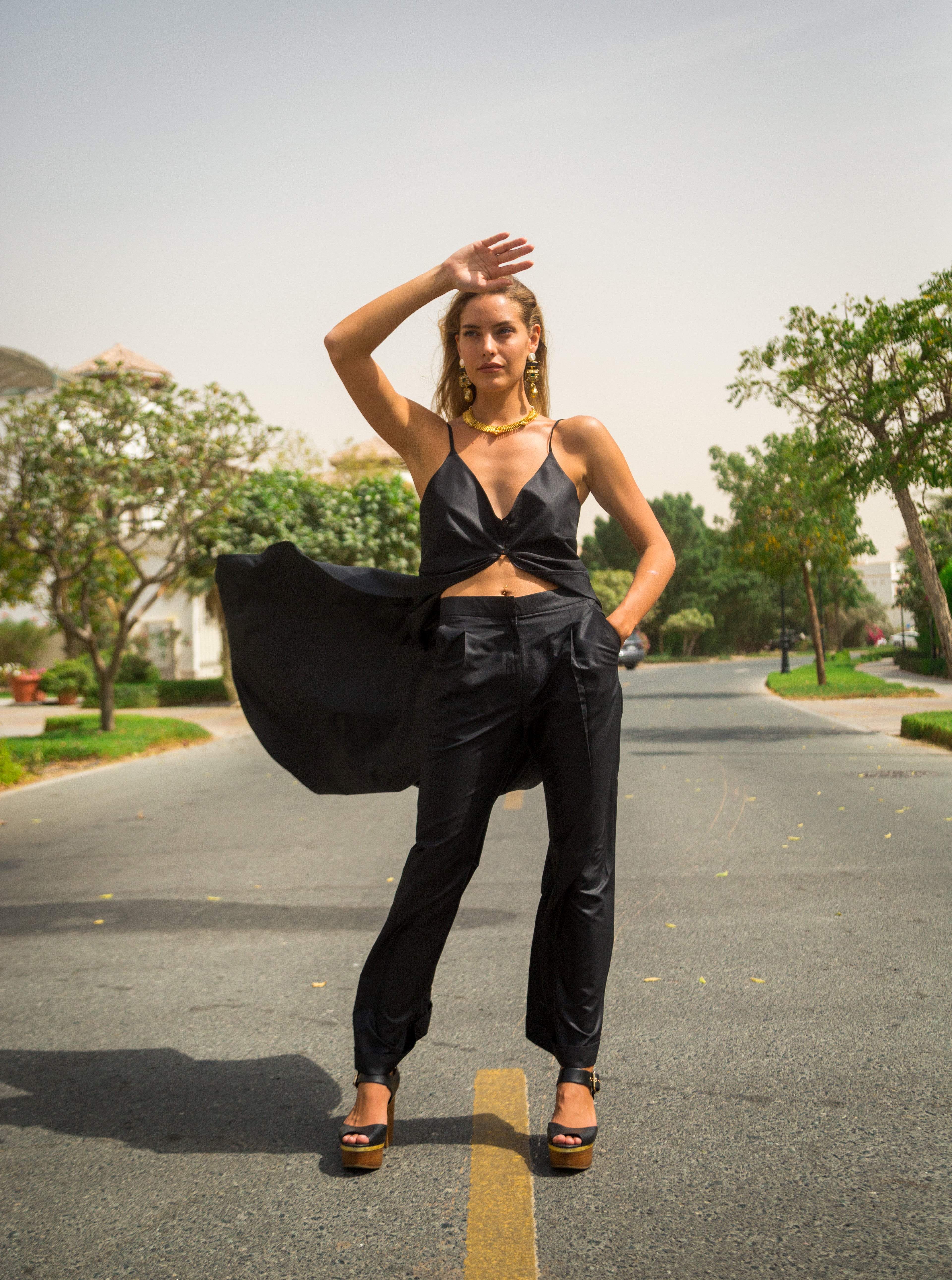 We are having the biggest love affair with she wolf styling. Timeless & classiness epic pair of trousers and overlay. These are made out of beautiful poplin fabric. The cut is high waisted with a wide leg and the result is a super flattering, comfortable + wearable pant. These go perfectly with all your blouses and jackets and add that bit of something extra special!Product details