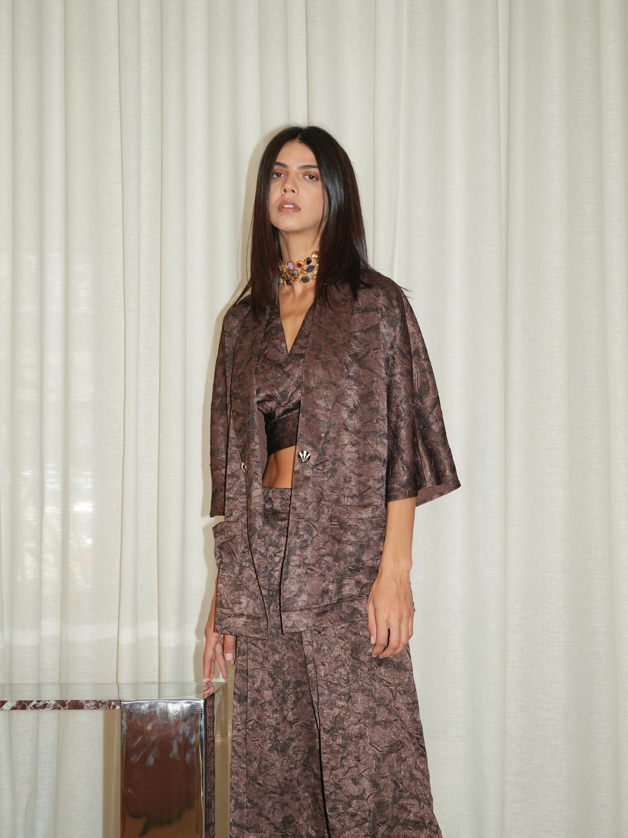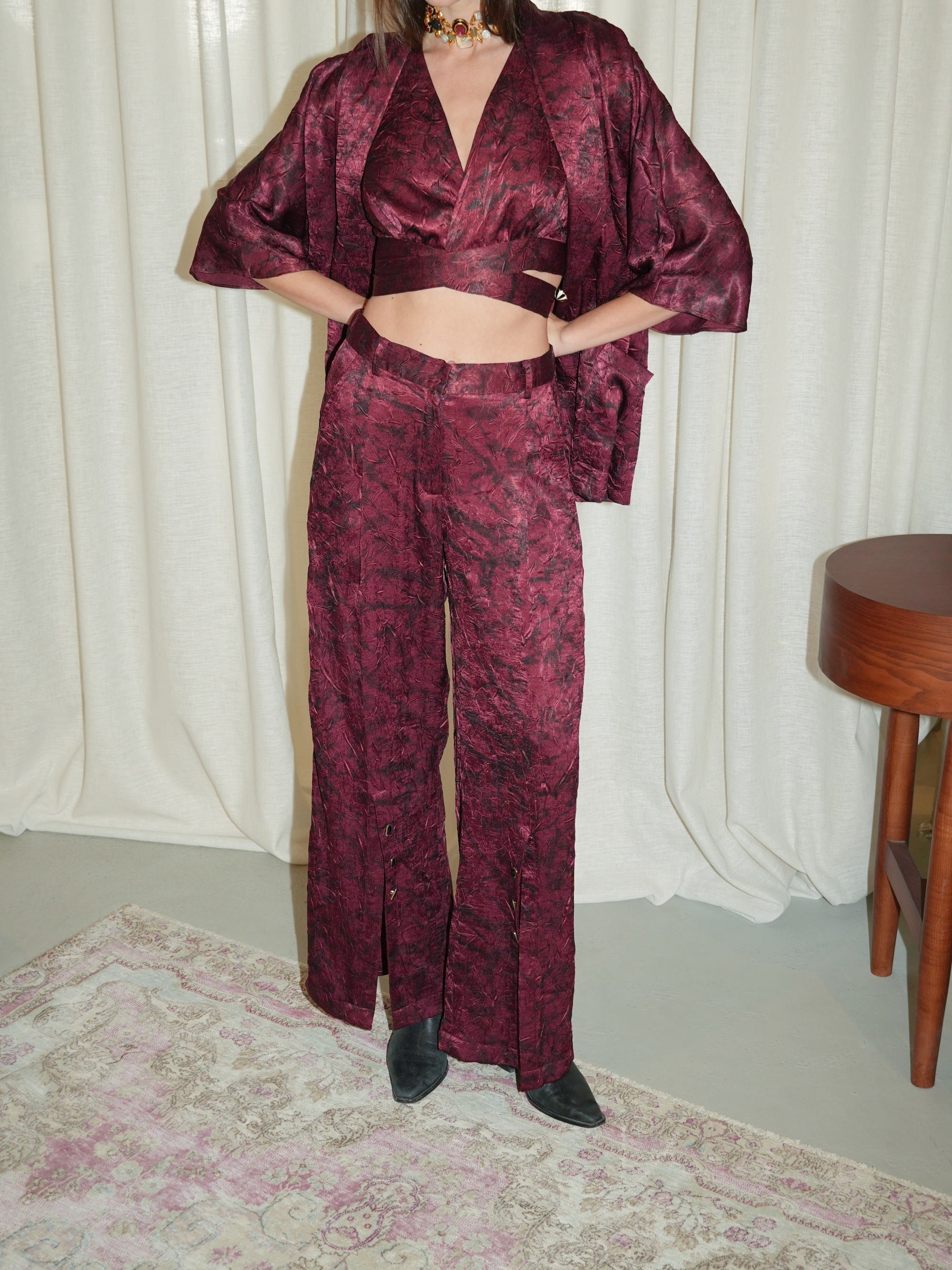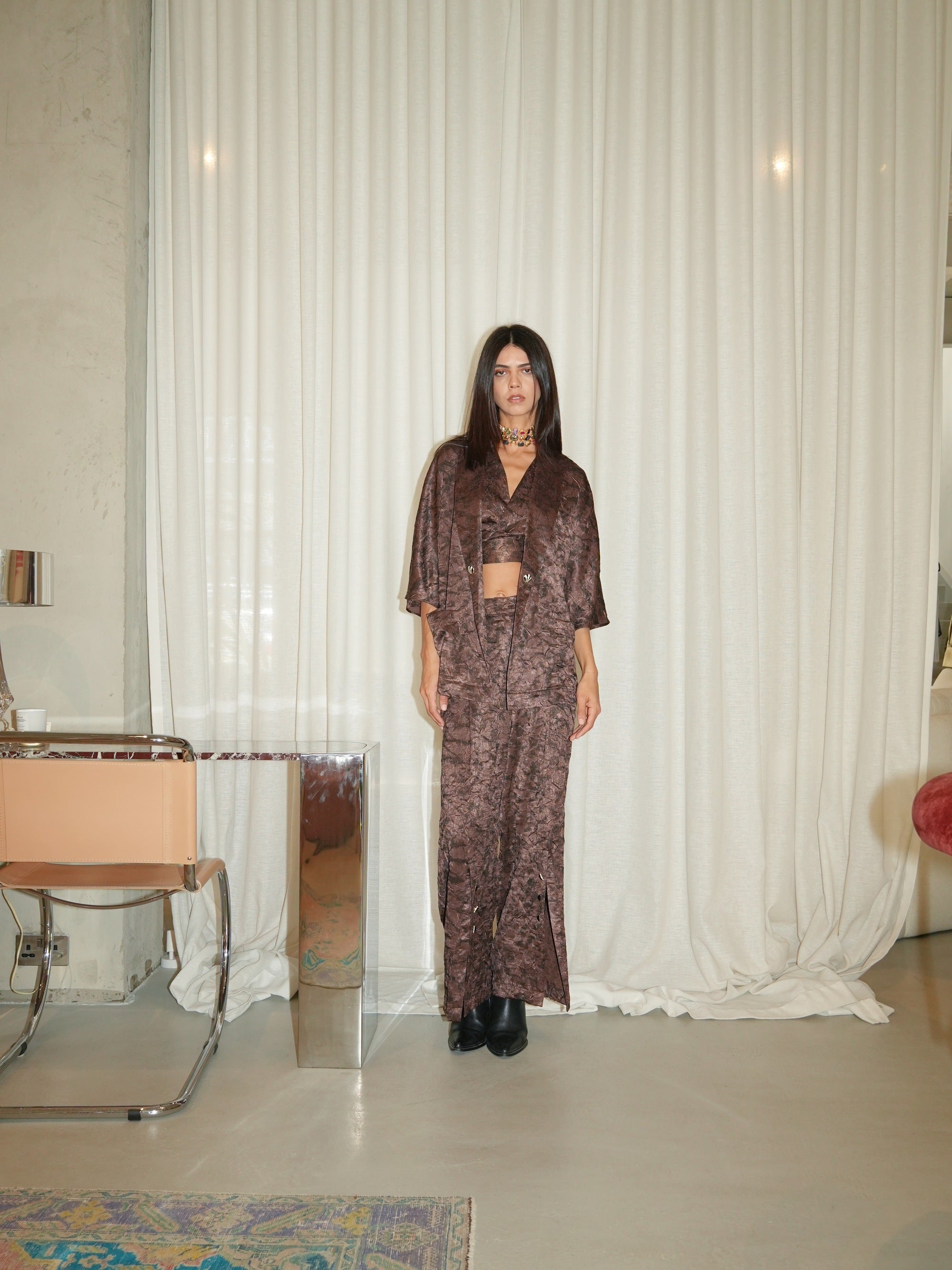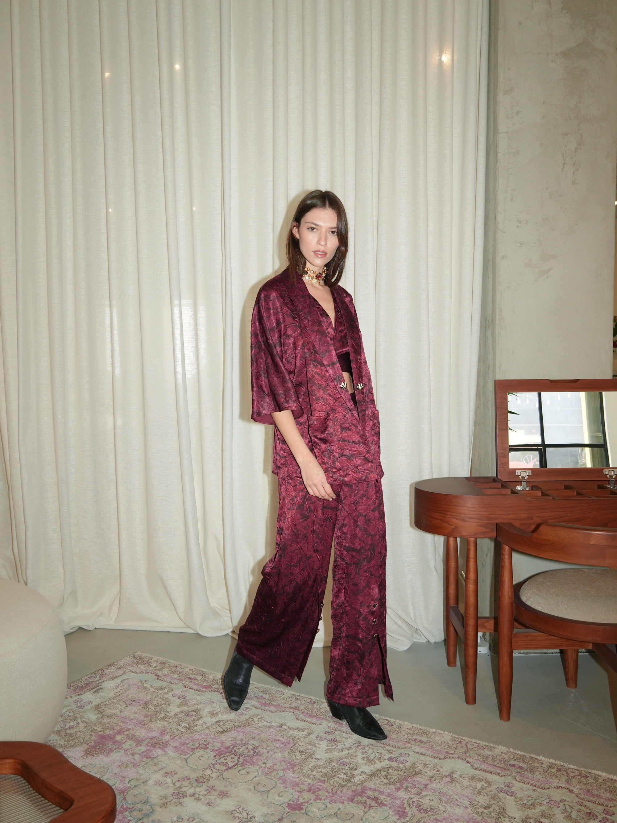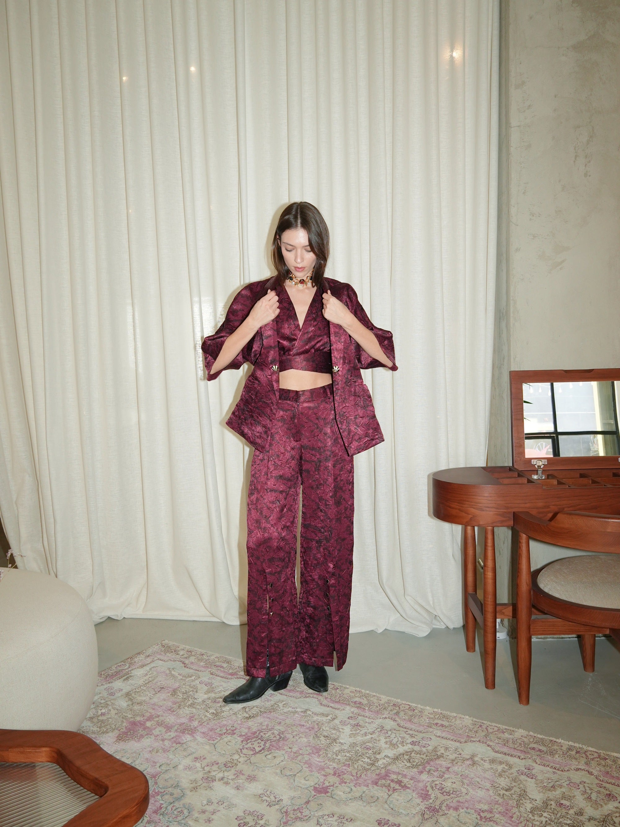These pants make a statement in every step.  A fluid, relaxed fit, match with our wrap around top & shorts sleeves blazer, they’re made to move with you from slow mornings to bold nights out.