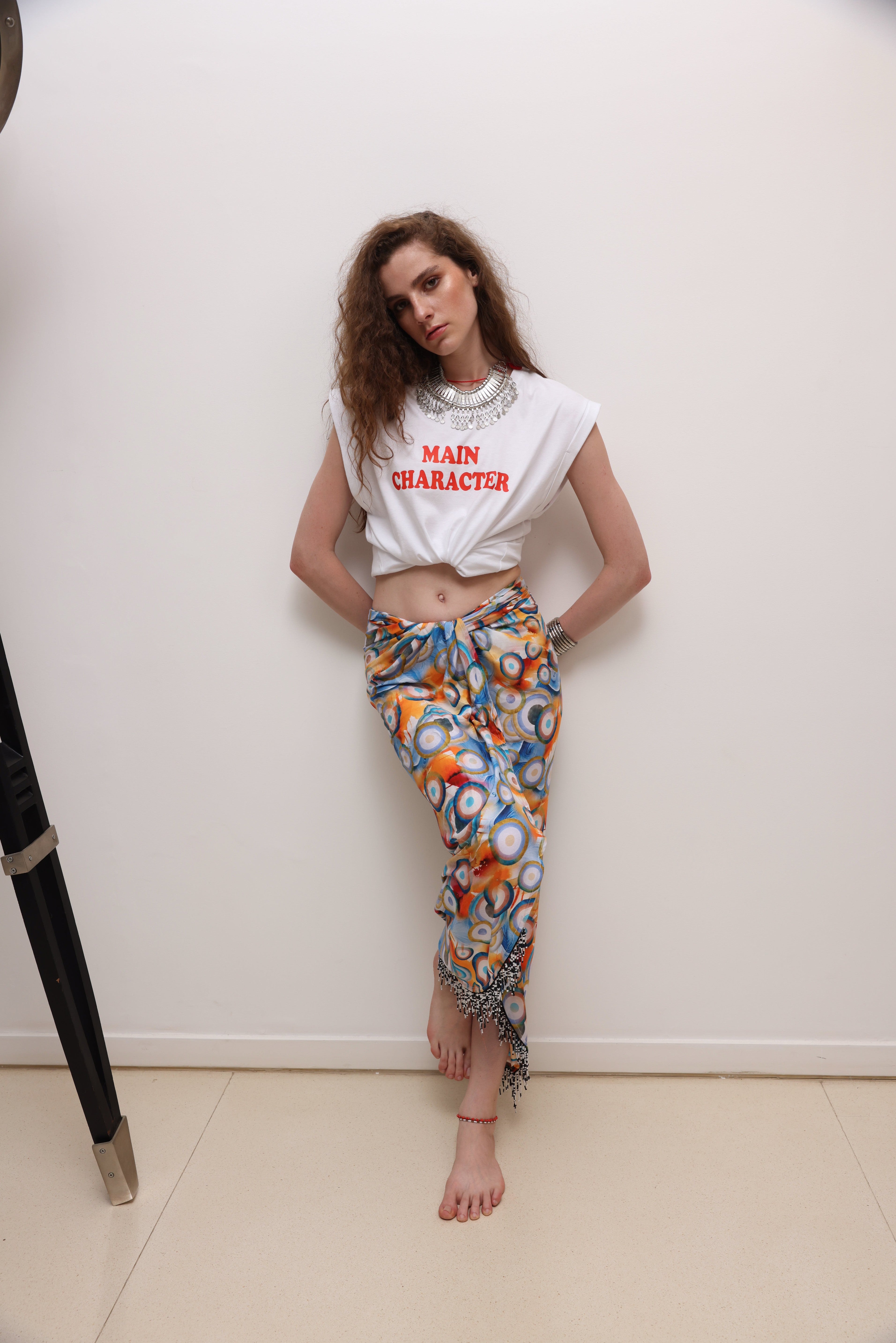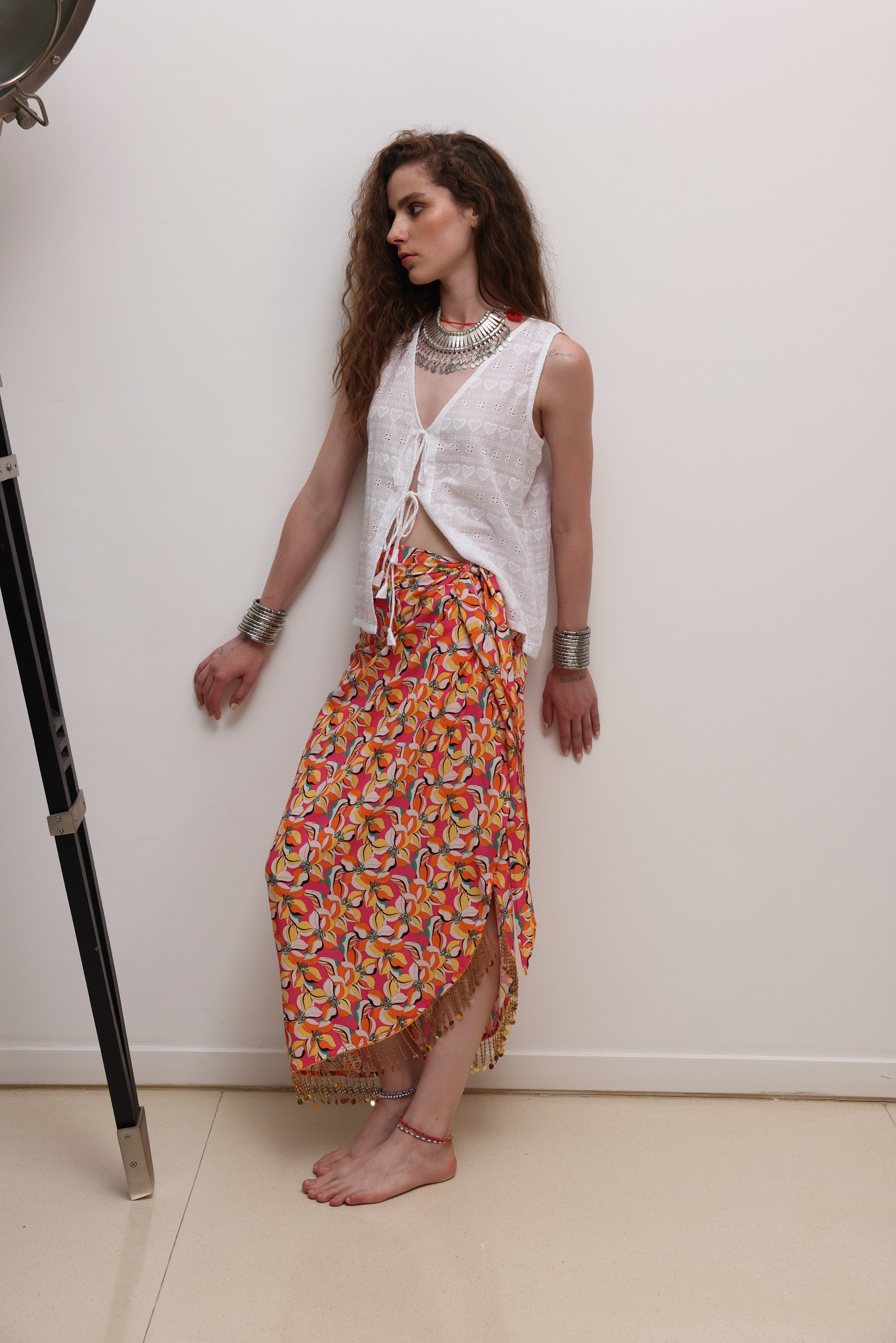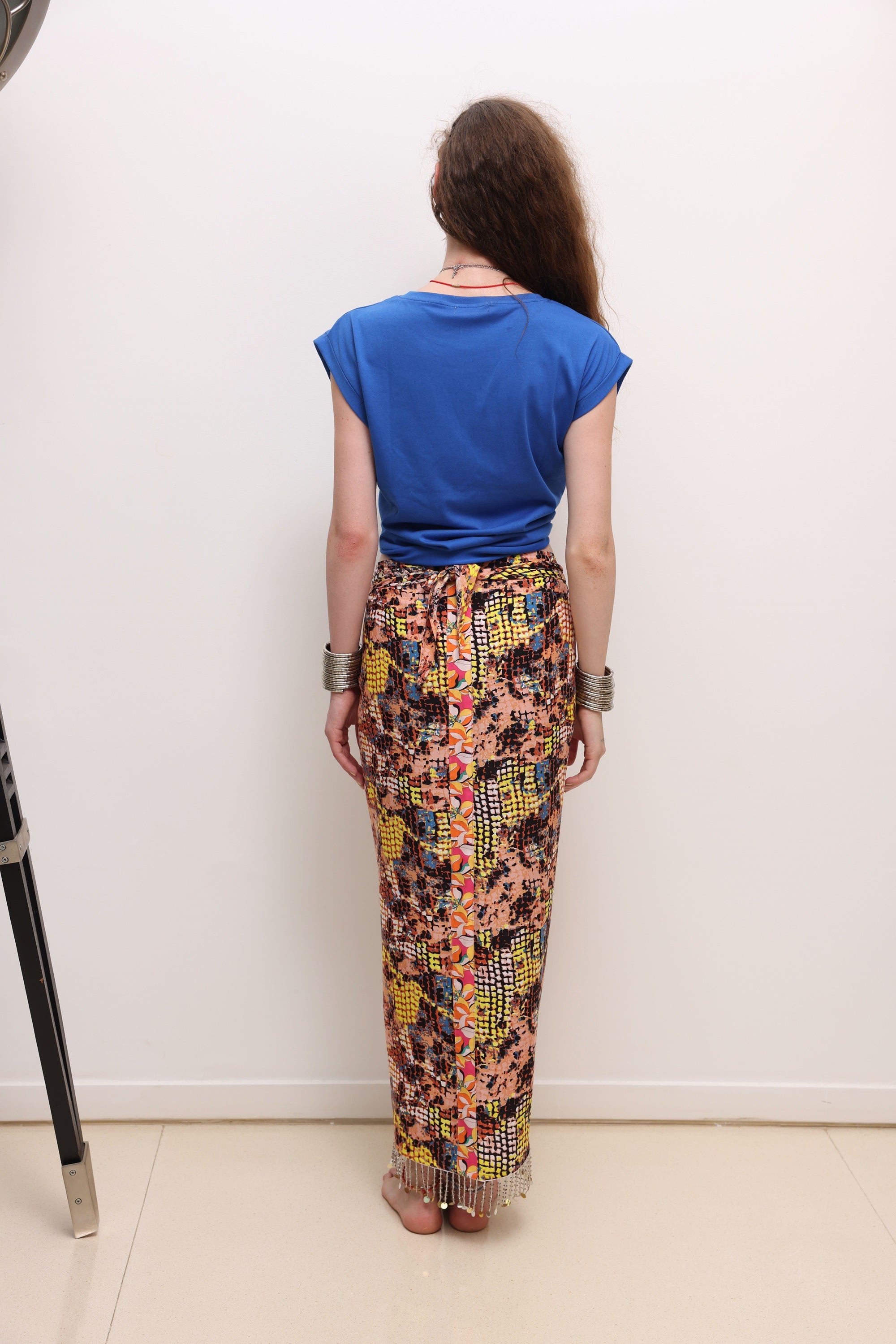 This lightweight sarong is your go-to layering piece.  It designed to wrap, tie, and transform in endless ways. Whether worn as a skirt, dress, or shawl, its fluid fabric moves with you and adds an instant touch of ease and elegance. Perfect for poolside lounging, beach strolls, or sunset cocktails.  The sarong that goes wherever you do beach to beyond.