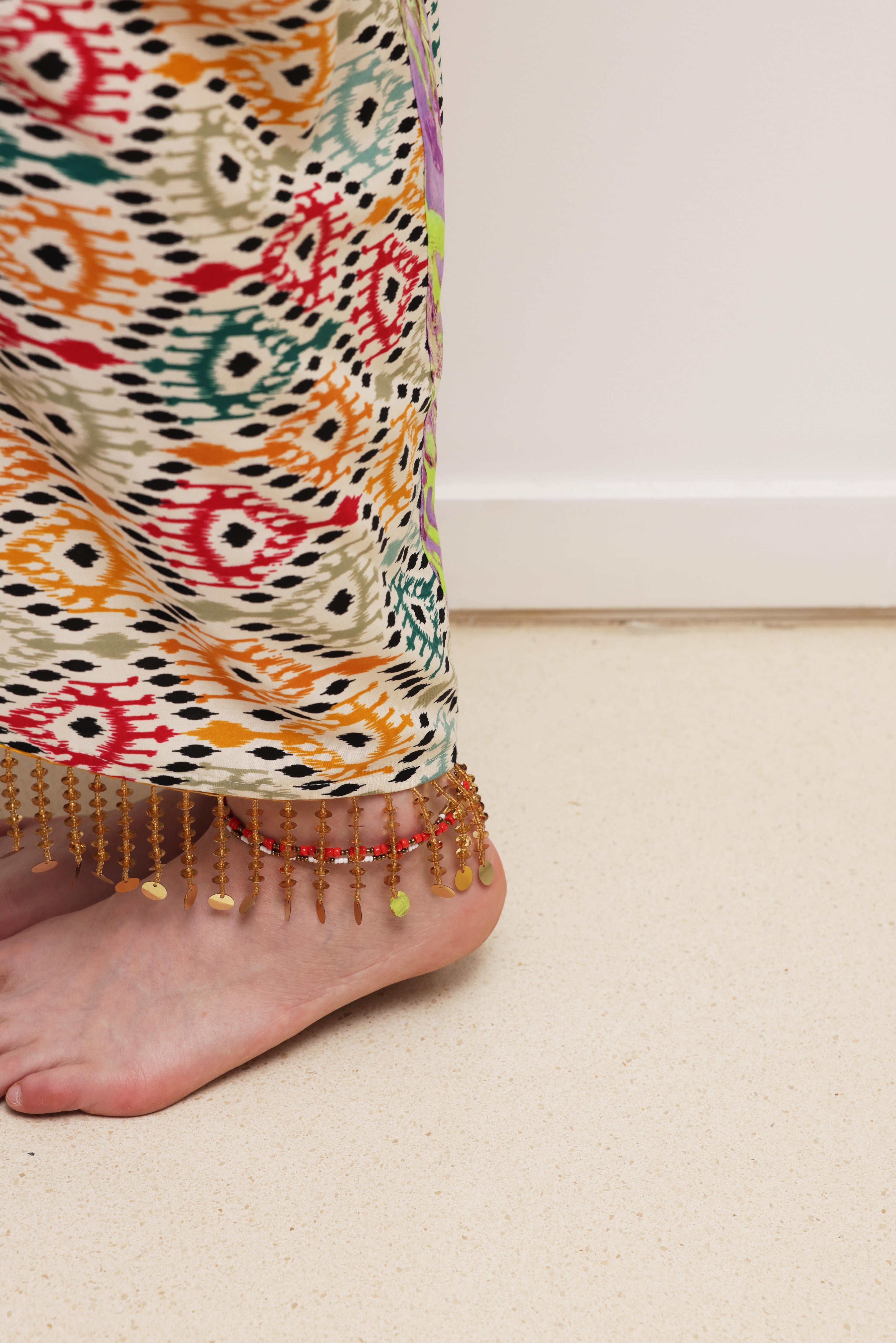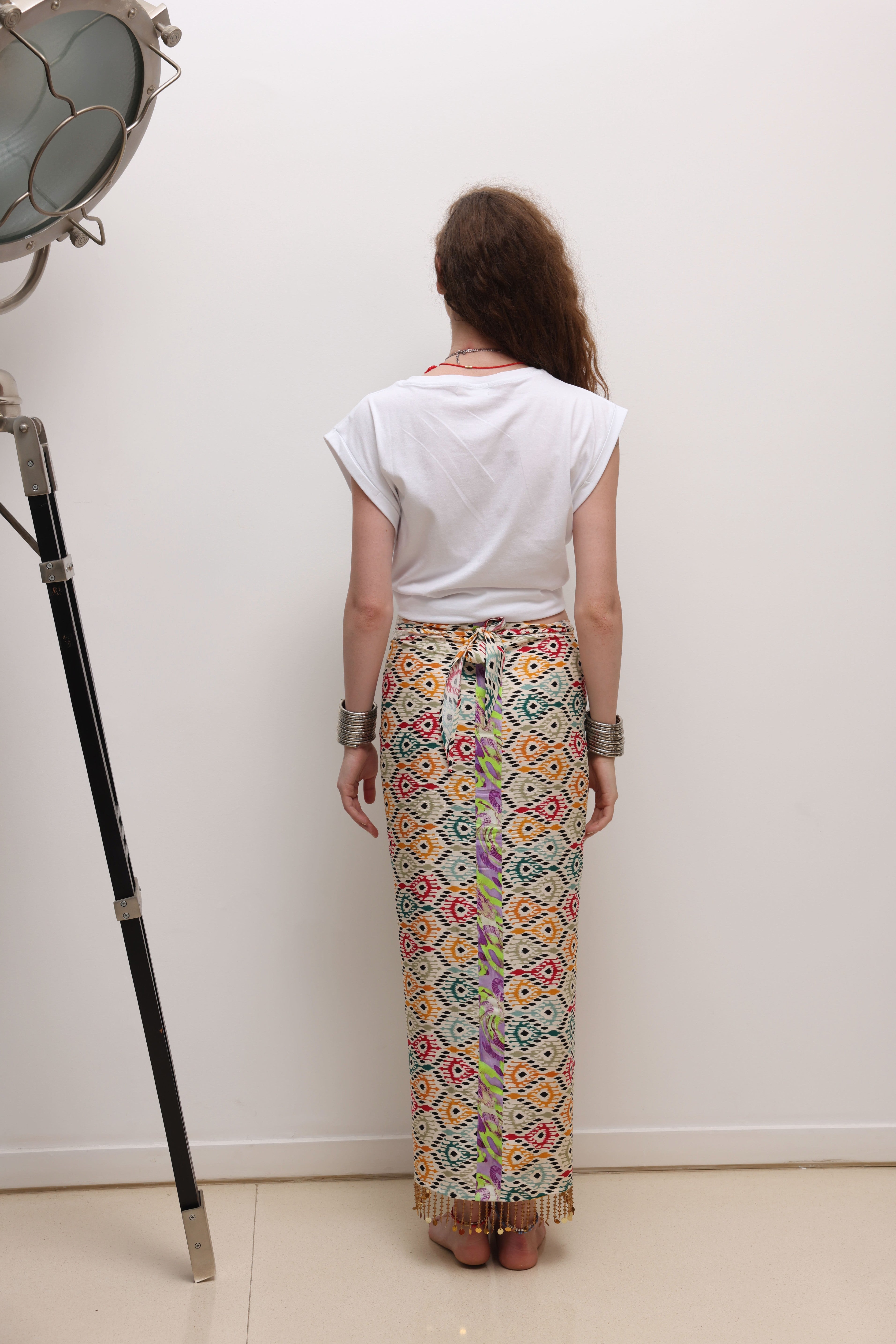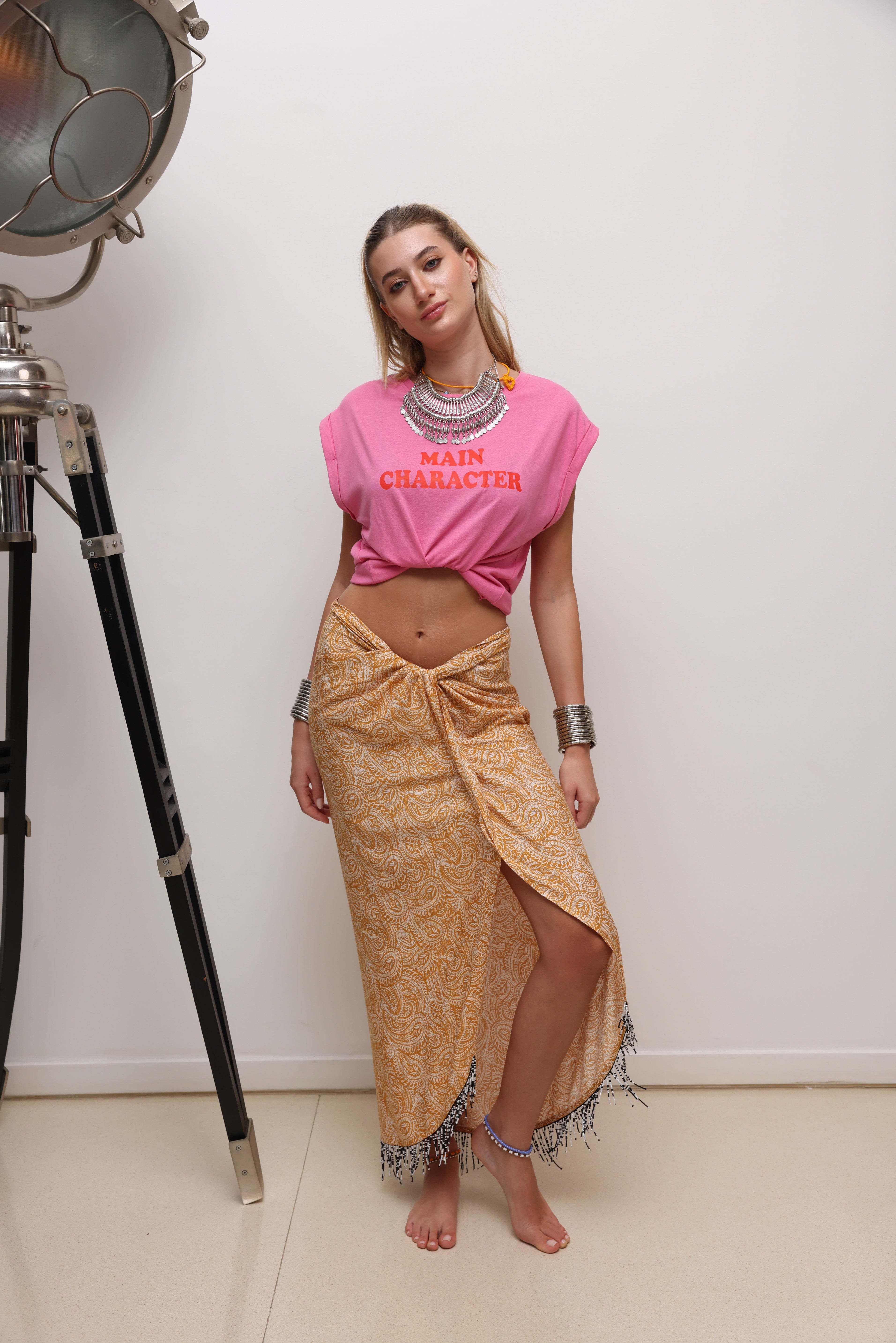 This lightweight sarong is your go-to layering piece.  It designed to wrap, tie, and transform in endless ways. Whether worn as a skirt, dress, or shawl, its fluid fabric moves with you and adds an instant touch of ease and elegance. Perfect for poolside lounging, beach strolls, or sunset cocktails.  The sarong that goes wherever you do beach to beyond.