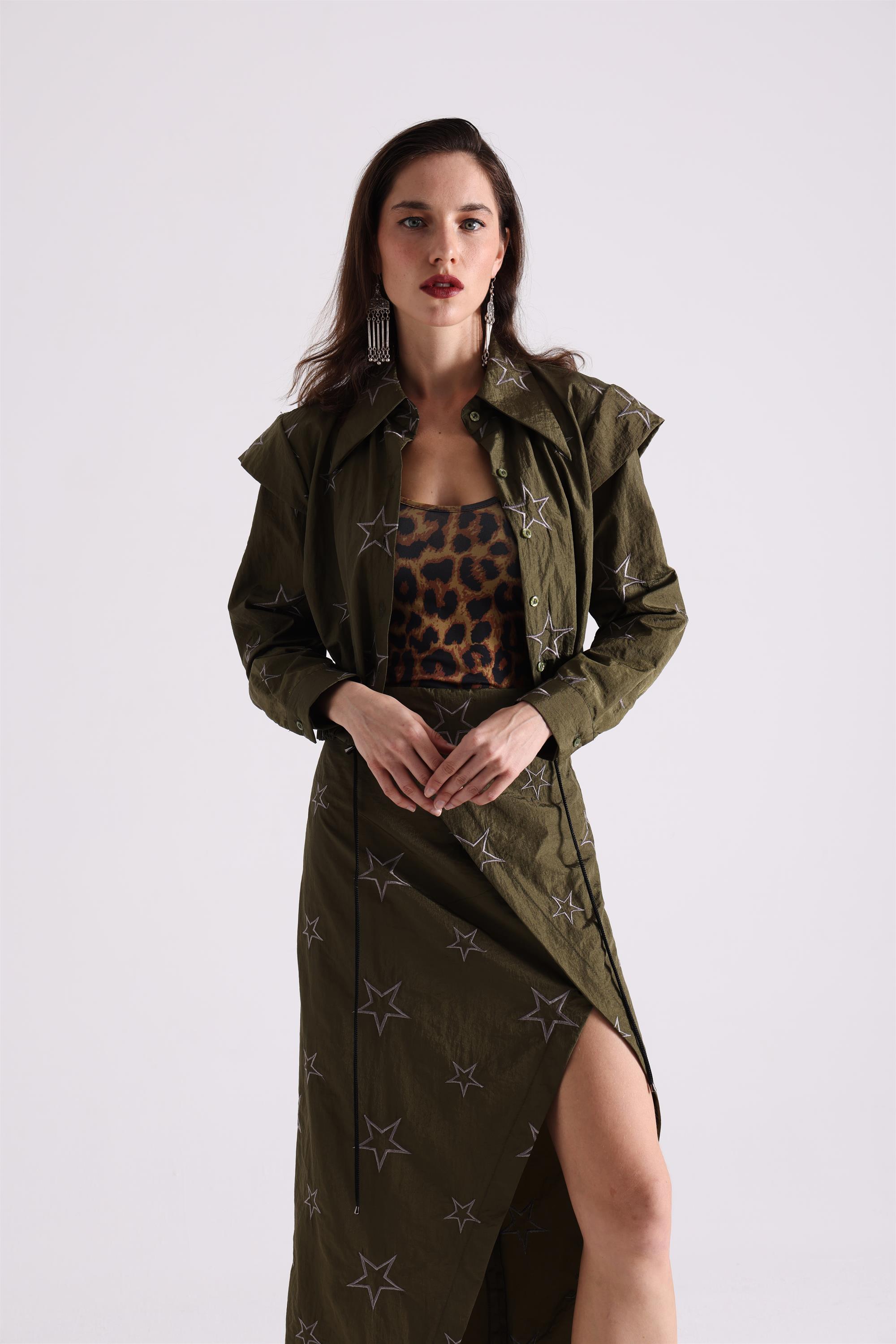 Kick back and rock your casual look.  It's another phenomenally beautiful, jaw dropping jacket w/ skirt.  We are loving the power of it and it's vibe!