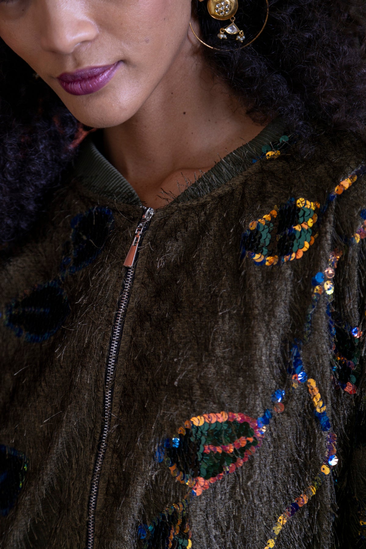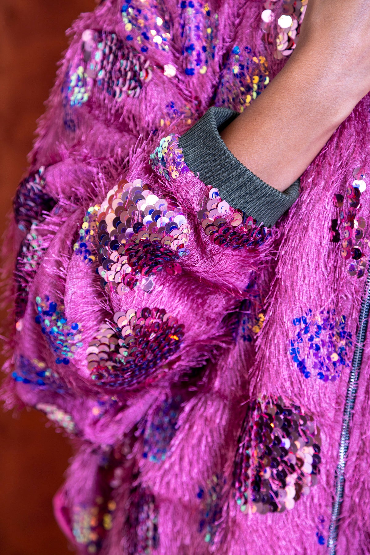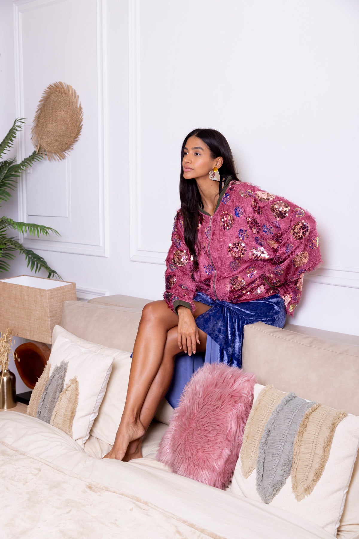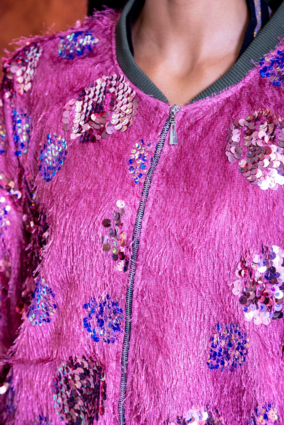 Shine bright in our sequins bomber jacket. Perfect for adding some glam to your outfit.