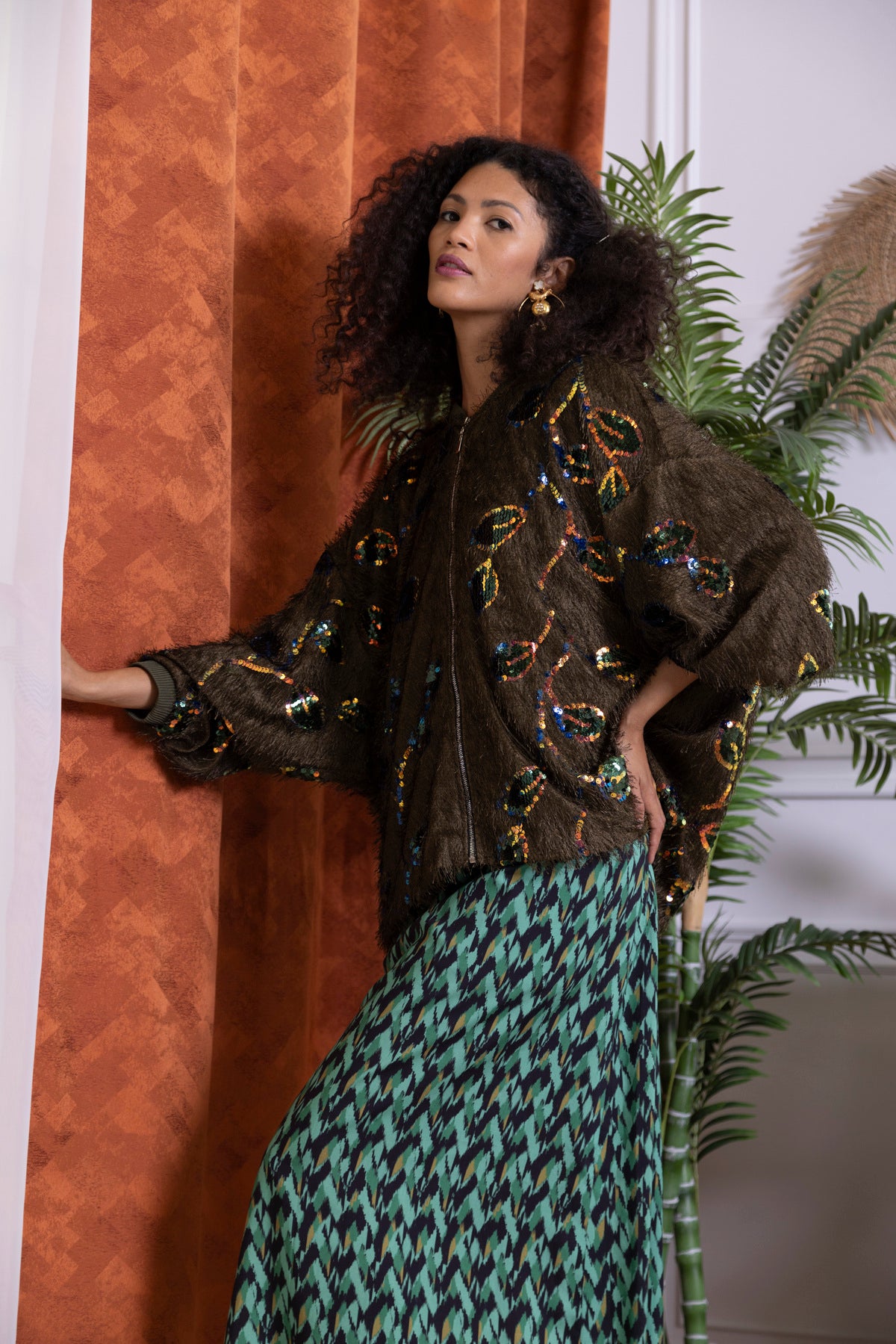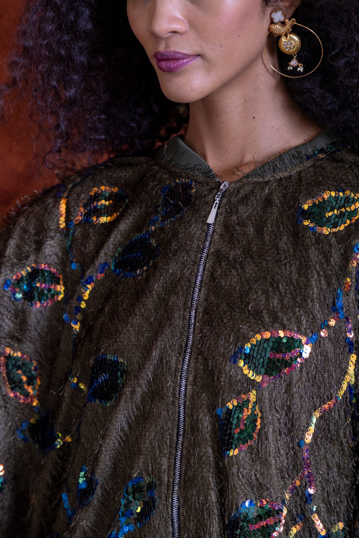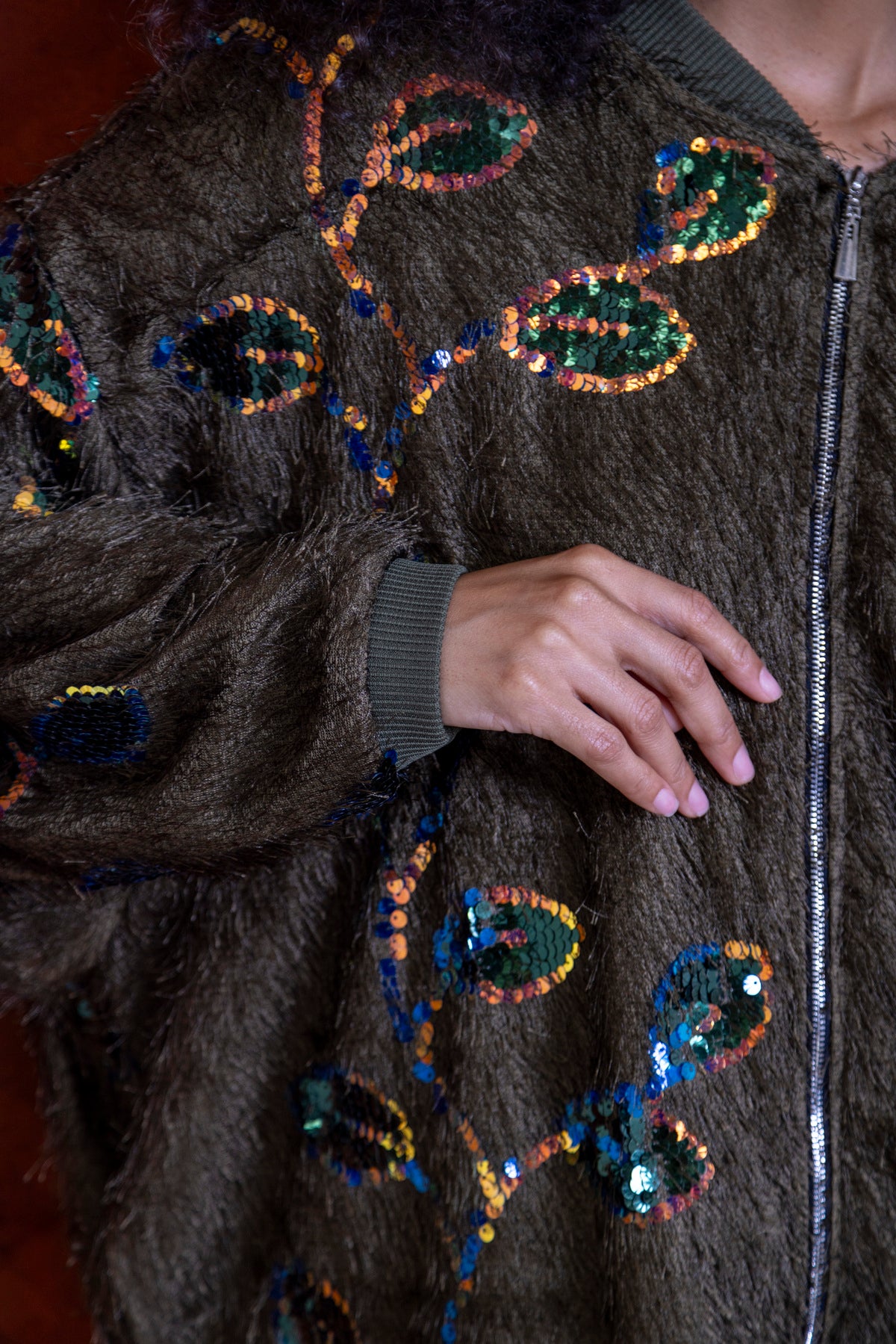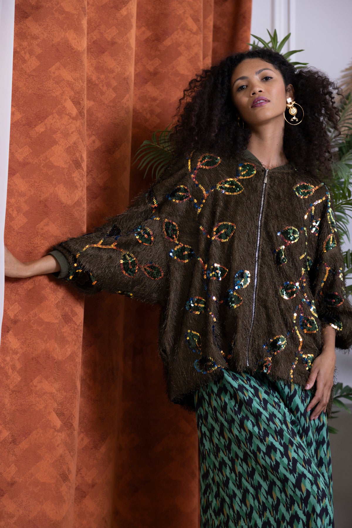 Shine bright in our sequins bomber jacket. Perfect for adding some glam to your outfit.